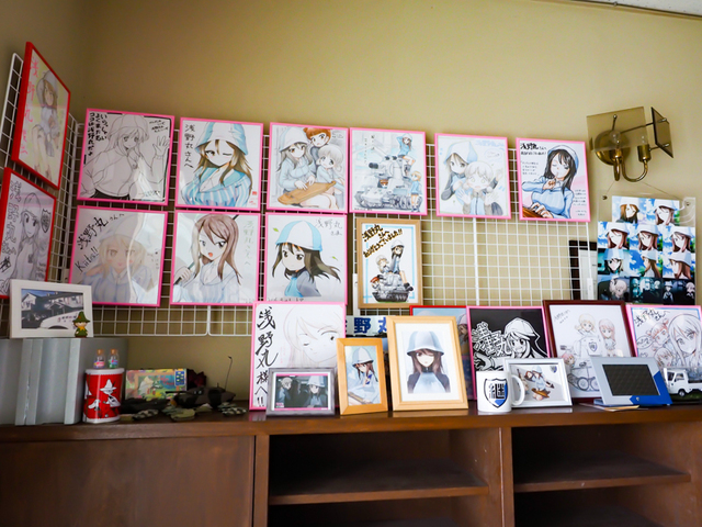宿の中はミカファンによるイラスト色紙や継続高校のグッズなどを展示