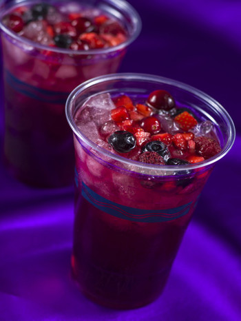 引き込まれそうになるキラキラしたベリーが乗った紫色のカクテル