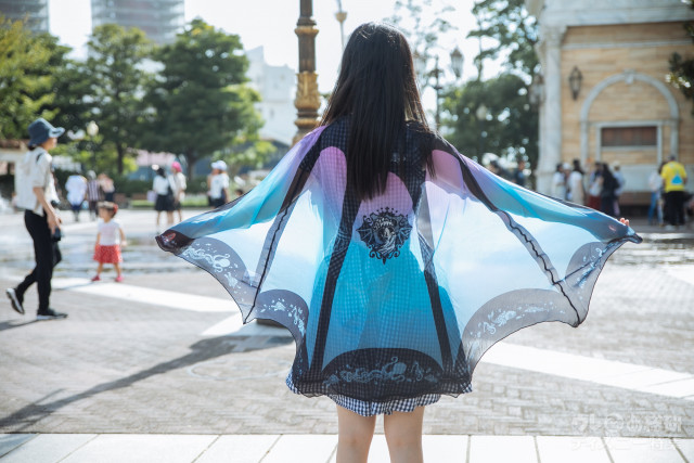 背中のミッキーのように、マントをひるがえしてハロウィーンを満喫してください!!