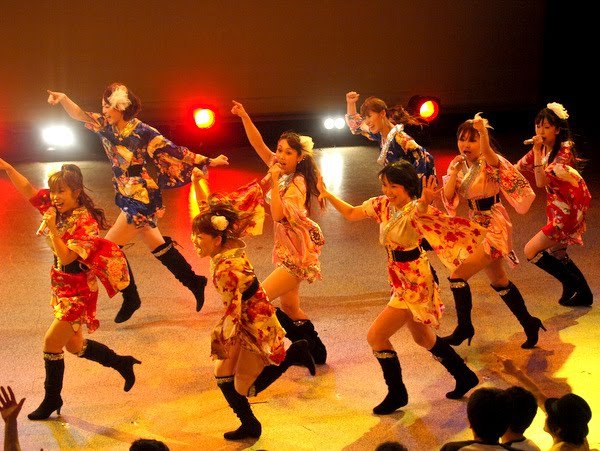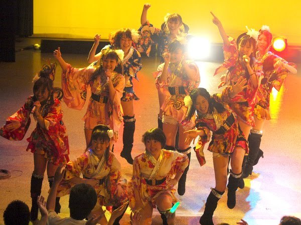 はい、第二ブロックの頭を飾ったのは、これも前回UMUアワードでビビビと来てしまったグループ、大阪新世界の「OSAKA翔GANGS」です。いやー、ほんっとこのグループも好きなんですよ!好きなグループ多すぎてすみません!翔ギャンのウリはともかく元気!躍動感に溢れまくったステージングに、こちらも手足が長い美女揃いのメンバーが映える映える! 着物がひらひらとなるのも綺麗ですし 、大人数でわっさわさーとステージを移動しまくるのも楽しいですよね。そして、楽曲もファンキーでいいんです!「ウルフルズみたいでカッコいいですね~」とは同行した某編集者さんのお言葉でした。そうそう、わかります!大阪ファンクが息づいてるんですよね、このグループ。まさしくご当地!といった佇まいで、一度新世界で見てみたいですよねー。その前に、一度インタビューもしておきたいデス!