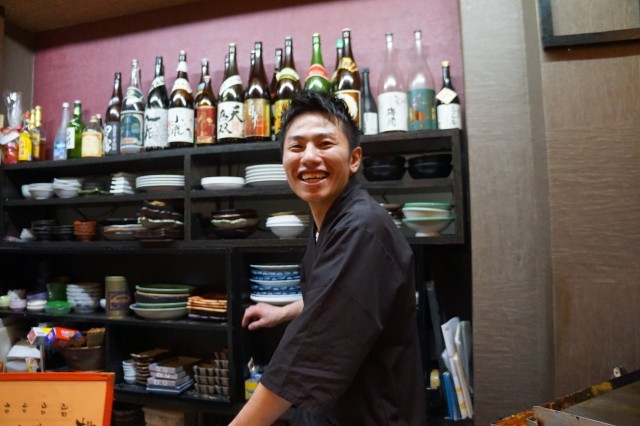 木の大きな看板は彼の手作り。どこまで才能あるんですか!というくらいのマルチタレントぶり。こちらのお店は店主ご出身の山口のお酒と料理が味わえます。