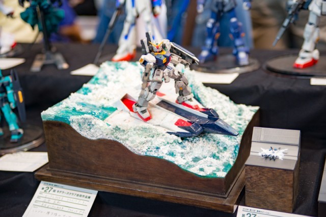 会場には他にも2015年に発表・発売され、ガンプラ界隈で大きな注目を集めた「スーパーフミナ」をベースにした作品から、人気バンド「KISS」をモチーフにした可愛らしい作品、ガンプラを使って「ガンダム」の世界を表現したジオラマ作品も見応えのある作品まで、数多くの個性的な作品が注目を集めていました。