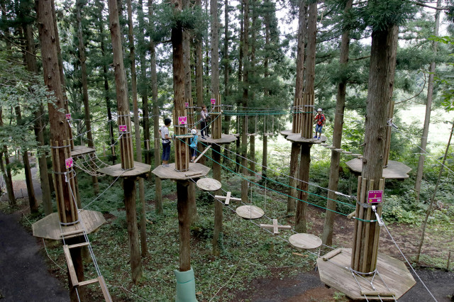 ドキドキ、森の冒険アスレチック「フォレストアドベンチャー・湯沢中里」