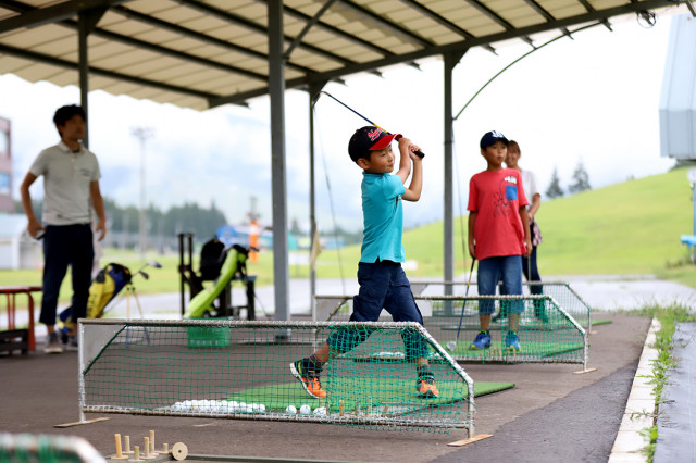 場内には300ヤード打ち放しのゴルフ練習場もあり、豪快なティーショットやアイアンの練習も可能。ゴルフ初体験だったダイキくんとソウタくんでしたが、ここでショットの練習をじっくりと行うことができ、コースデビューも楽しくスムーズに進みました。