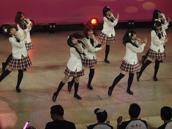 というわけでお次の登場がこちら!鈴木がウレぴあ総研で何度も取り上げている、栃木から来た「とちおとめ25」です!このグループを初めて見たのが、去年末のUMUアワードでした。正直に言えばノーマークだったんですが、まぁともかく楽曲はいいしパフォーマンスはしっかりしてるしで、かなりヒトメボレ状態。その後折に触れて取り上げさせていただいているんですが、この日も安定したパフォーマンスを見せてくれてましたねー。ダンスのシンクロ率が高いと思うんですよ、とちおとめちゃん。ご当地系はゆるい感じのダンスか、もしくは勢い&個性重視のダンスか、という場合が多いと思うんですが(それも好きなんですが)、地方を本拠地にしながらも、彼女達は統一感のあるパフォーマンスを志向しているんです。これは一つの特徴でありウリになる部分ですよね。この日も、名曲「いちご記念日」に入るところで、お客さんが全員捧げ手(ケチャ)をするところで鳥肌がぞぞぞーっと立ってしまいました。候補生のみらい&あきな姉妹もグループに溶け込んでますし、いやはや、末永く見守りたいグループです。どっかの牧場とかでも見たいですよねー(笑)。