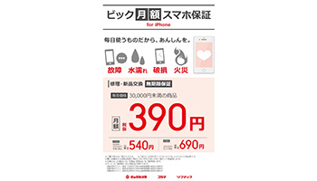 ビックカメラグループは、スマートフォン(スマホ)をサポートする独自の月額保証サービス「ビック月額スマホ保証」の提供を9月19日に開始した。料金は390円からに設定した。
