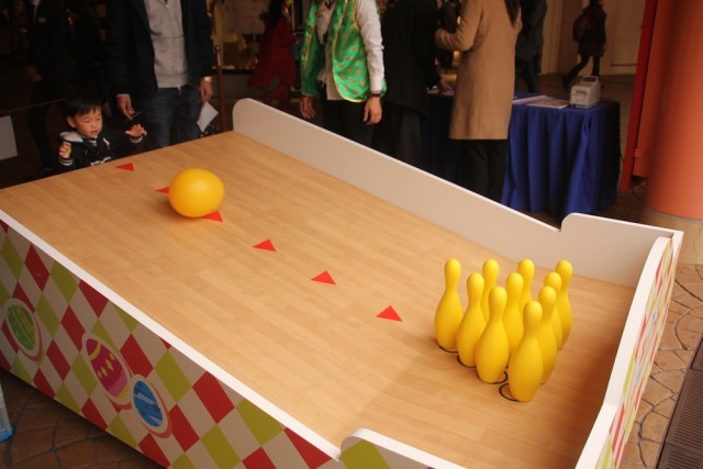 - タマゴ型のボールを投げる「エッグボウリング」