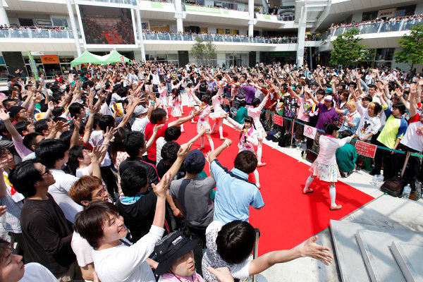 8日間連続ライブの締め日ということに話題が移ると「戻りた~い」と口々にするメンバー。「でもやっと本契約むすんでもらえたから」「うん、がんばったからじゃない?だから、あしたからも学校ちゃんとがんばろう!」「がんばるー!」と、美しい流れにお客さんが拍手を…ぁぃぁぃだけはほんっと~に学校をイヤがってるけど(笑)、美しい流れでMCが締められそうなところ、「宿題終わってない」「宿題って存在忘れちゃうよね」「てか真山は宿題自体を学校に忘れてきちゃった」「えー、それ絶対にやる気なかったよー」と話題が横道に逸れ収拾のつかない楽屋状態に。さすがking of 学芸会の貫禄(笑)。