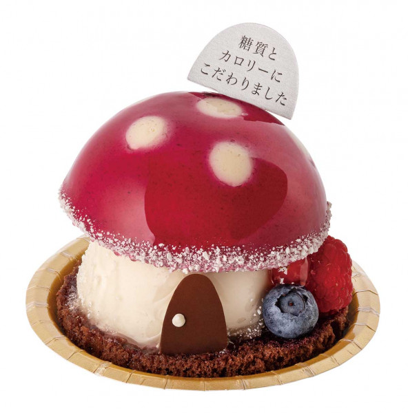 カシスムースの屋根でできた可愛いきのこのおうちのケーキ。バニラムースの壁の中には、カシスジュレがぎゅっと詰め込んであります。