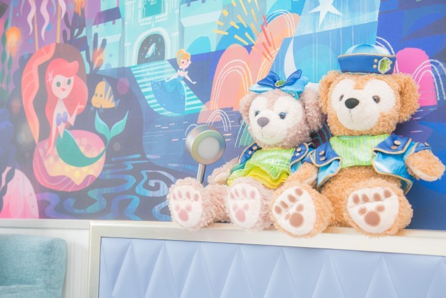 大きなイラストの壁紙とダッフィーの相性は抜群!