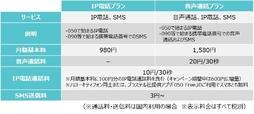 価格は12,000円(税別)で、SIMカードとセットの場合は発行手数料として3,000円(税別)が必要。料金プランは、IP電話プランが月額980円(税別)から、音声通話プランは月額1,560円(税別)となっています。