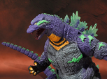 『ゴジラ モスラ キングギドラ 大怪獣総攻撃』(2001年公開)での超凶暴なゴジラの姿を連想させる黒目を一切廃した白目剥き出しのデザインは、迫力抜群! ゴジラのダイナミックな体躯を表現した造型とカラーリングの妙味をジックリと堪能したいところです。