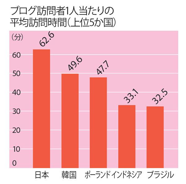 日本は「ブログ大国」。調査会社のコムスコア・ジャパンが2011年8月、ブログの利用時間で日本が世界一位になったと発表した。