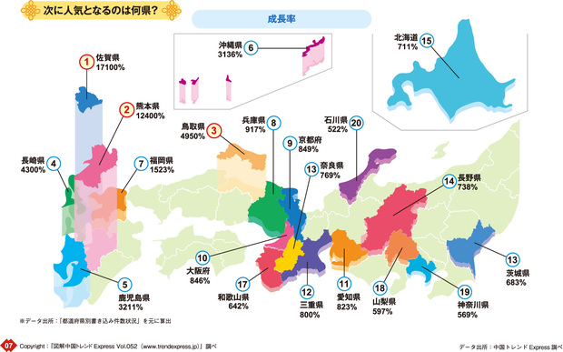 成長率で見ると、なんと佐賀県が17,100%で第1位。