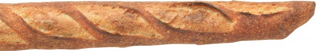 長さ約58cm、中央の太さが約5.5cmと小ぶりなサイズ。小麦、水、酵母だけで48時間熟成させた種から作った、素朴かつ歯応えのある食感。