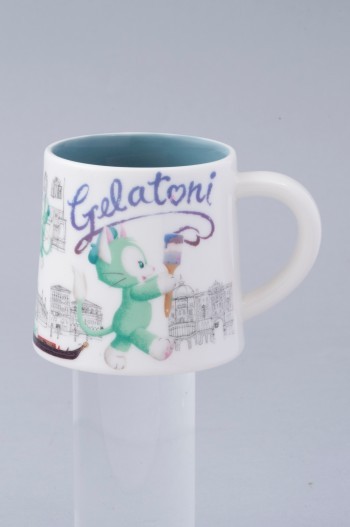ジェラトーニのマグカップは、下からだんだん細くなる形。