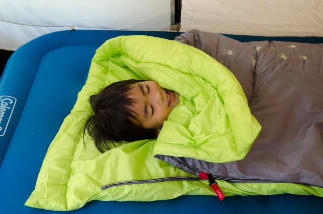 シュラフの使い心地、寝心地を確かめておければ、子どもはもちろん、お父さんお母さんも安心ですよね。