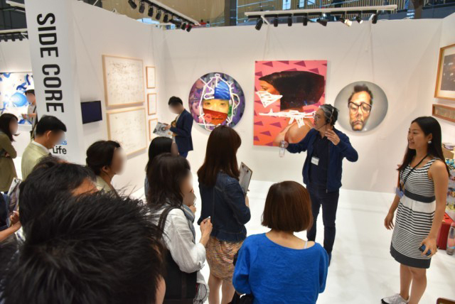 各ブースで、ギャラリストの方に作品の特徴やオススメの作家などを紹介していただきました。参加者の方々も、目の前で見るアート作品に釘付けのよう。美術館よりも間近で見られ、その気になれば購入もできるということで、より興味が湧いているようです。