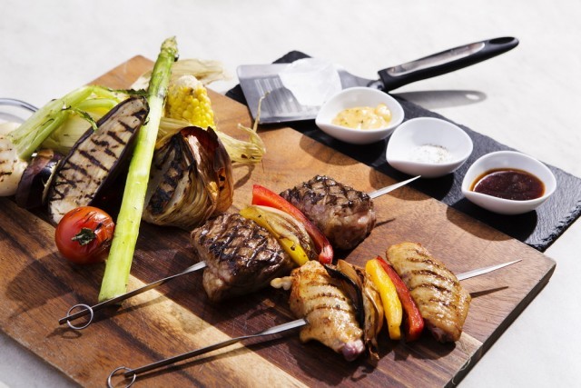 今回はラグジュアリーなBBQを演出するため、料理長がグリルしたこだわりの肉をブロシェット(串焼き)で提供されます。