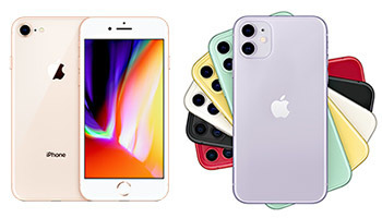 iPhone 8(左)とiPhone 11(右)