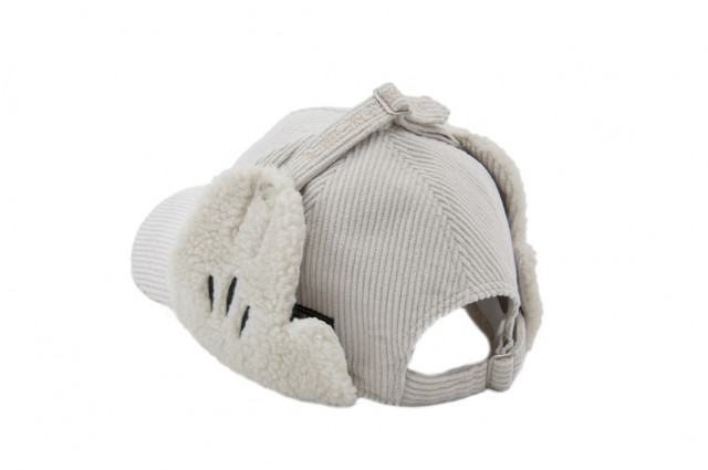 コーディロイ素材。サイドのミッキーハンドを下ろすと耳あてになります。