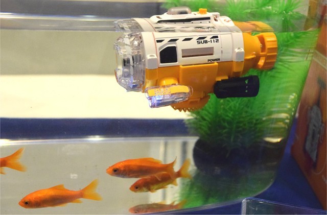 魚目線で動画や静止画が撮影できる潜水艦型のおもちゃ。