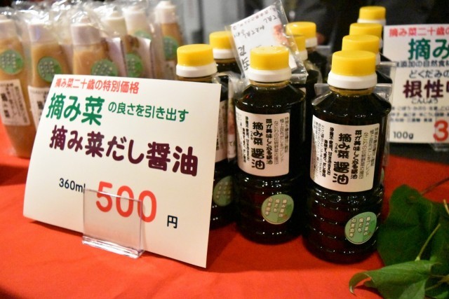 当日は雑草入りの味噌や摘み菜用のダシ醤油なども販売。