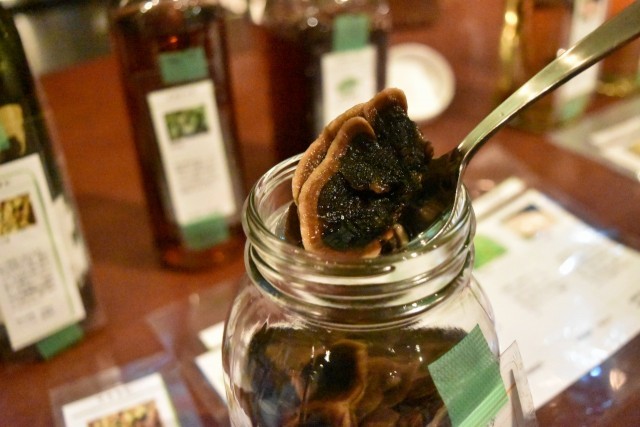日本酒の他に、マタタビ ・冬虫夏草 ・サクランボ・イカリソウ・カワラタケなどの貴重な「摘み菜酒」を試飲することができました。