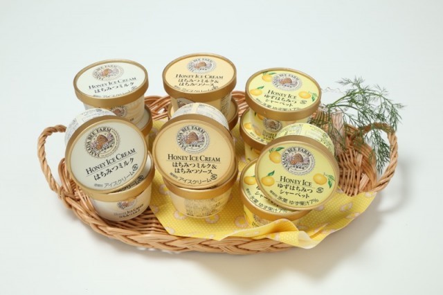 はちみつをふんだんに使った「はちみつミルク」、はちみつソースをマーブル状に混ぜ込んだコクのある「はちみつミルク&はちみつソース」、はちみつと相性のよい国産ゆず果汁を使った爽やかな酸味が楽しめる「ゆずはちみつシャーベット」の3種類が4個ずつ、計12個のパッケージとなっています。