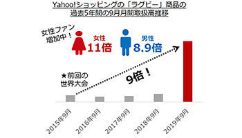 Yahoo!ショッピングでラグビー関連グッズの取り扱い高が前回大会の9倍に