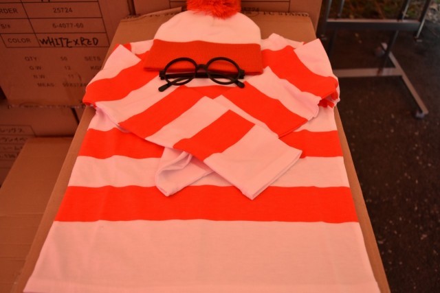 コスプレは、ウォーリーのトレードマーク「赤のボーダーシャツ&帽子」。