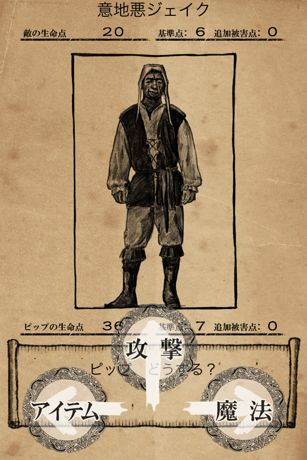 RPGと同じく、戦闘も発生します。戦闘はターン制で、サイコロを投げて攻撃を行います。