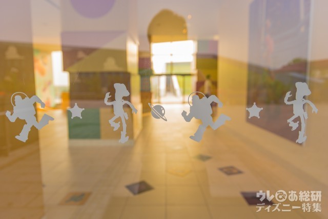 ガラス扉など至るところがトイ・ストーリーの世界を反映した凝ったデザインで、細かいところまで観察しながらホテル内を巡ってみるのも「トイ・ストーリーホテル」の楽しみ方のひとつ。
