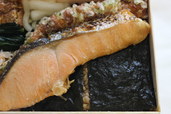 海苔の間に挟まれたご飯は、しょうゆの味が染みていて口に含んだだけで「美味しい! 」という声が漏れてしまうほど。塩っ気が強い鮭と、海苔が間に入ってしっとりとした米とのバランスが最高です。