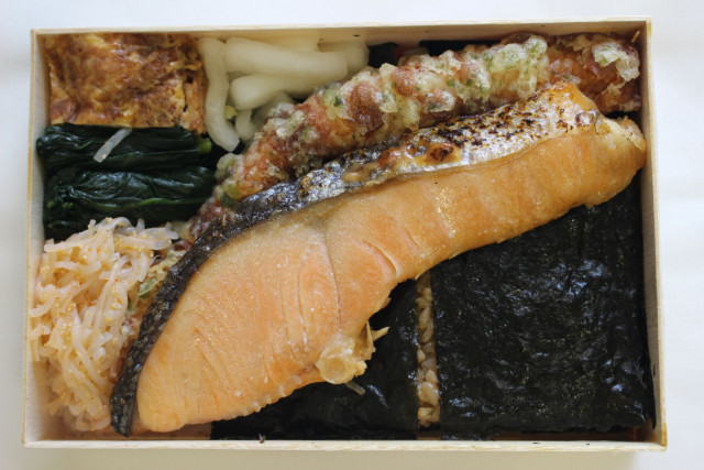 のり弁当を専門に手掛ける「刷毛じょうゆ 海苔弁 山登り」の商品が、エキュート東京でも購入できます。海の幸を中心としたシンプルな鮭弁『海』1,080円(税込)は、のり弁のおいしさを追求した一品。