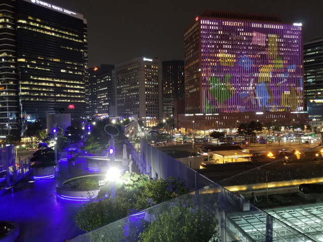 昼も夜も撮影が楽しいところだが、どちらかにしか行けない場合はブルーのライトが美しく、近くのソウル・スクエアビルのメディアアートも楽しめる夜がおすすめだ。