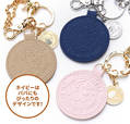 メインチャームは、上品なレザー調仕立て。ピンクには「ママになります!」、ネイビーとベージュは「そばについているよ!」というメッセージが英語で刻印されています。お揃いで使えますよ。実際に、夫婦で色違いで購入される方が多いのだとか。