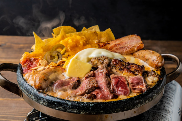 ニューヨークのストリートカルチャーをつめこんだダイナー「HangOut HangOver」にて10月1日より登場している「厚切り牛ステーキ・ジャークチキン・生スパイスの石焼デビルチーズ鍋」はいかがでしょう?