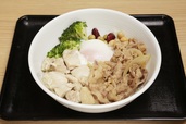 吉野家の牛を入れることはもちろん、半熟玉子を入れて彩りをよくしました。 野菜や肉が半熟玉子と混ざることで、最後まで飽きずに味わえます」