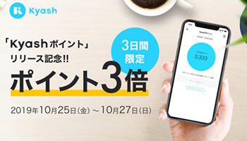 ウォレットアプリ「Kyash」を提供するKyashは10月1日以降、決済金額の2%翌月キャッシュバックを「リアルタイムでKyashポイントを最大1%付与」に変更している。そのKyashポイントのPRを兼ね、10月25日0時00分~27日23時59分の3日間限定で、「『Kyashポイント』リリース記念!ポイント3倍キャンペーン」を実施する。