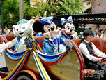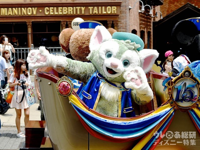 ミッキー、ミニー、ダッフィー、ジェラトーニが15周年テーマソングにのせてやってくる「グリーティングドライブ」の模様をフォトギャラリーでお届けします。