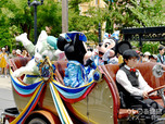 アメリカンウォーターフロントで開催されるミニパレードでは、ミッキーたちが15周年のコスチュームを身にまとい、ヴィッグシティ・ヴィーグルに乗って登場します。