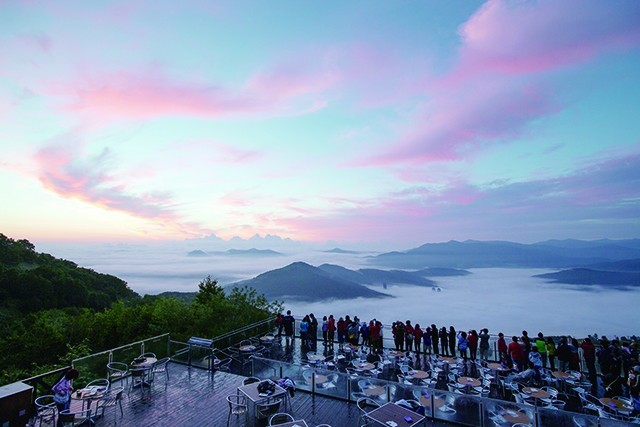 特有の立地と特別な気象条件によって現れる「雲海」。せり出したテラスからは、幻想的で美しい景色を眺めることができる。特別な朝の時間を過ごしてみよう。