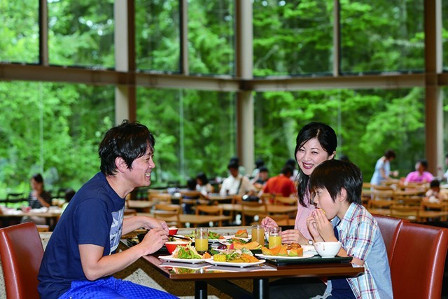 バラエティに富んだ種類豊富な料理が味わえるビュッフェスタイルのレストラン。キッズメニューやデザートなどファミリーが喜ぶメニューも揃う。