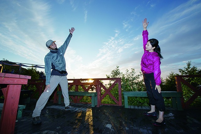 開放感あふれるトマムの山頂で、誰でも簡単にヨガ体験ができる。目の前に広がる雲海を見ながら、ココロもカラダもリフレッシュ!