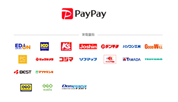 10月24日現在、PayPayに対応する全国チェーンの家電量販店はエディオン、100満ボルト、ケーズデンキ、上新電機、ビックカメラ、コジマ、ソフマップ、ヤマダ電機、ベスト電器、マツヤデンキ、ツクモ、ドスパラ、パソコン工房、グッドウィル、ベイシア電器、ピーシーデポコーポレーション、デンキチの17ブランド。PayPayではショッピングに分類されているゲオとゲオモバイルを加えると19ブランドになる。