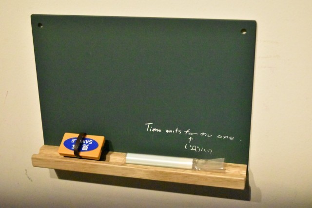 学校の黒板みたいなメモボードは、何かと便利そうですが、「Time waits for no one.」を自分で書いてみたい気もする。