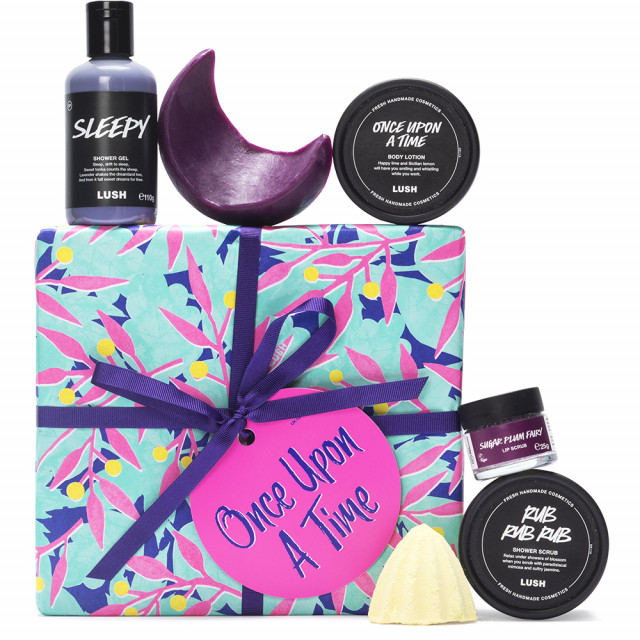 「ワンス アポン ア タイム」は、ノット スリーピー シャワーボム、スリーピー シャワージェル (100g)、ナイト ブルーム パープル、ワンス アポン ア タイム (50g)、ソルティロック (75g)、シュガープラムフェアリー リップスクラブと、昔むかしのおとぎ話の世界にふさわしいロマンティックなアイテムをセレクトしたギフトです。価格は5,640円 (税込)です。