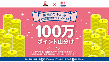 また、11月1~30日の期間、対象店舗で200円(税別)以上を利用して会計時に「楽天ポイントカード」もしくは「楽天ポイントカードアプリ」を提示すれば、100万円相当の「楽天ポイント」を山分けして付与するキャンペーンも実施する。対象者が100万人を超えた場合、1人当たり1ポイントの付与となる。