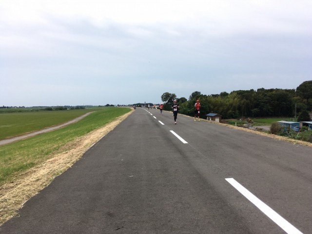 五霞町エイドの出口は関門になっています。こちらを出発し、いよいよ後半戦がスタート!後ろ髪を引かれつつ、スロースタートでエイドを後にするランナーが多いようでした。